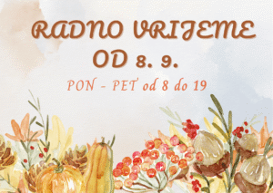 S obzirom na završetak ljetnih godišnjih odmora i početak nove školske godine, od [upišite datum] naša knjižnica ponovno radi prema redovnom rasporedu: